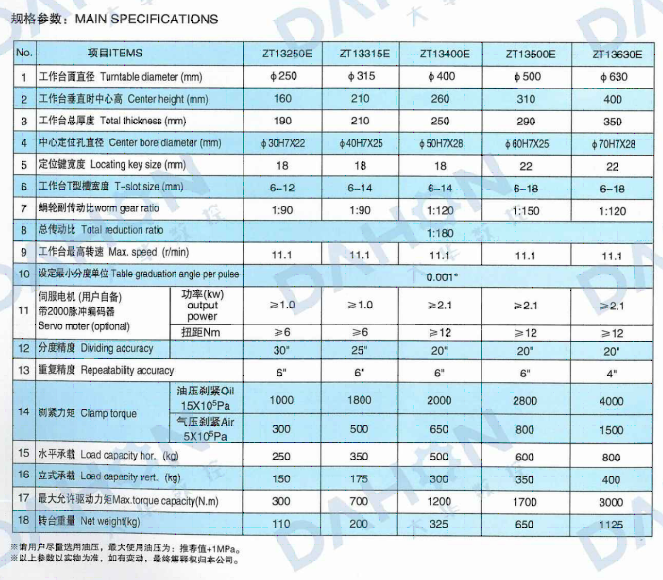 • 產(chǎn)品名稱: ZT13(250-630)E系列立臥兩用數(shù)控回轉(zhuǎn)工作臺