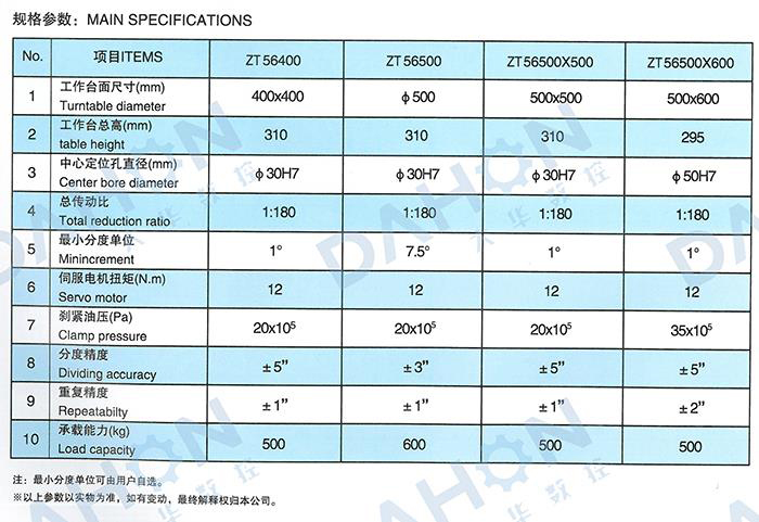 • 產(chǎn)品名稱: ZT56(400-500)系列數(shù)控等分回轉(zhuǎn)工作臺(tái)